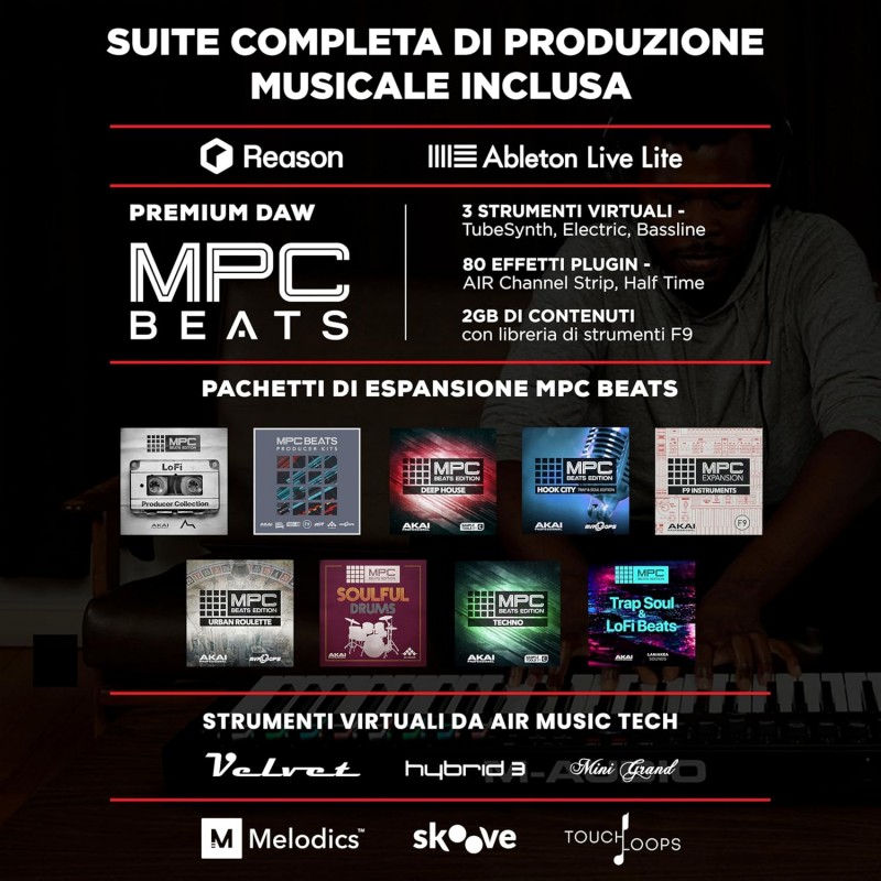 Include il software MIDI editor e un pacchetto completo di software per la produzione