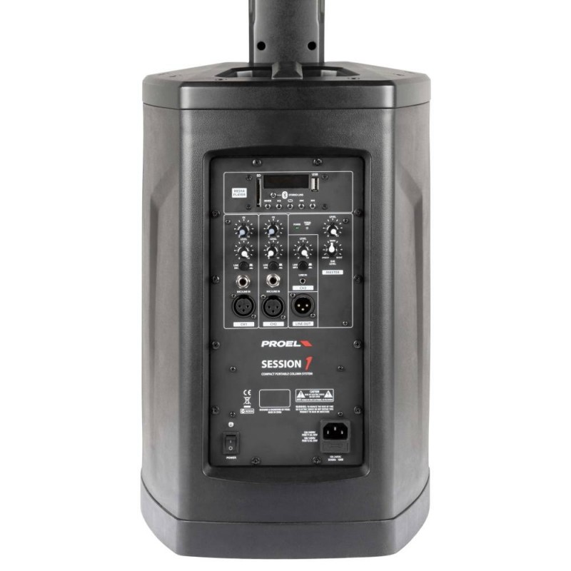 Session1 è un sistema a colonna portatile dotato di ingressi multipli e di un versatile lettore MP3 con connettività Bluetooth. Alloggiato in cabinet in polipropilene leggeri e robusti allo stesso tempo, è formato da una colonna con 4 altoparlanti full-range da 2.5" ed un potente subwoofer da 8". L’elettronica allo stato dell’arte include una sofisticata sezione di preamplificazione con filtri attivi e doppio limiter, oltre ad un potente amplificatore in Classe D da 400 Watt. Il Media Player che trovi a bordo è in grado di riprodurre musica non solo da una card SD o da una chiavetta USB, ma anche dal tuo smartphone o tablet attraverso una connessione Bluetooth, senza bisogno di cavi. Il mixer a tre canali incorporato permette di collegare 2 microfoni o sorgenti linea ed un player stereo. Un effetto digitale è disponibile per gli ingressi microfonici. Con una semplice manopola è possibile ottimizzare il suono per voce, musica o bassi spinti adattando il sistema ad ogni situazione. Il Session1può essere utilizzato in una varietà di applicazioni, dalla diffusione vocale e di musica dal vivo, alla riproduzione di musica e ai DJ set. |