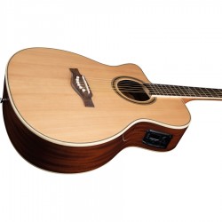 La chitarra acustica NXT A100ce con top in Abete, fasce e fondo in Mogano, manico in Mogano e tastiera in South American Roupanà è la soluzione perfetta se il tuo obiettivo è quello di imparare a suonare la chitarra e sei alla ricerca di uno shape più confortevole del classico Dreadnought, la NXT Auditorium Cutaway Eq è la migliore delle scelte.