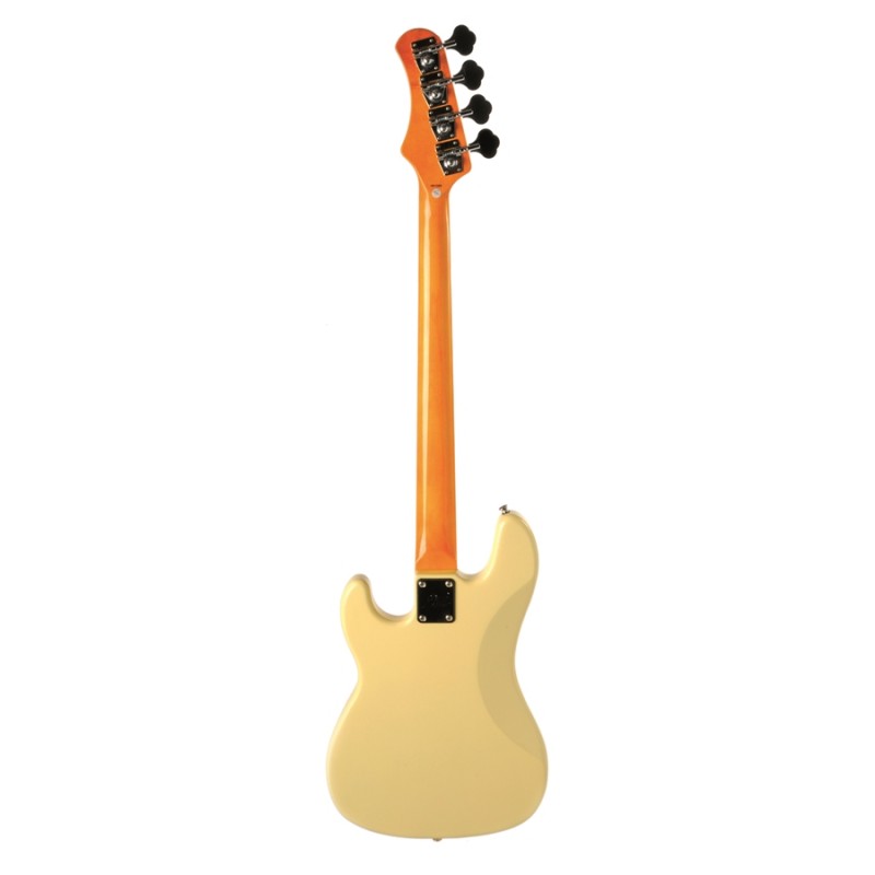 Basso elettrico con manico in acero, meccaniche cromate e body in tiglio.