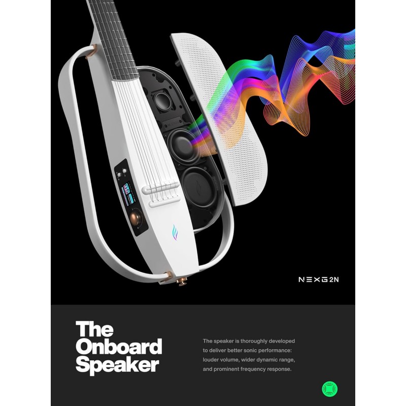 La NEXG 2 unisce la versatilità di una chitarra classica tradizionale con una tecnologia audio avanzata, racchiudendo più funzioni in un unico elegante strumento. Accendi la tua creatività con la NEXG 2. I suoi effetti integrati, il ritmo della batteria, l'accordatore e le funzioni di rimozione vocale migliorano la tua esperienza d'uso. Modella il tuo suono, aggiungi ritmo, rimani intonato e suona senza sforzo. Controlla facilmente i tuoi effetti, loop e impostazioni tramite l'interfaccia intuitiva della NEXG 2. Migliora ulteriormente la tua esperienza integrandola con l'app complementare, sbloccando funzioni aggiuntive e opzioni di personalizzazione. Cattura e sovrapponi le tue idee musicali senza sforzo con il looper integrato e il pedale wireless, di' addio alle sfide di temporizzazione e libera il tuo pieno potenziale musicale con la NEXG2. Collega senza problemi la NEXG 2 ai tuoi dispositivi intelligenti e usala come altoparlante wireless, consentendoti di riprodurre musica in streaming, suonare insieme alle basi musicali o goderti un audio di alta qualità ovunque tu vada. Sperimenta autentici toni di chitarra acustica con la tecnologia di profilazione acustica della NEXG 2, catturando accuratamente le caratteristiche uniche della tua chitarra acustica e fornendo simulazioni realistiche. |
