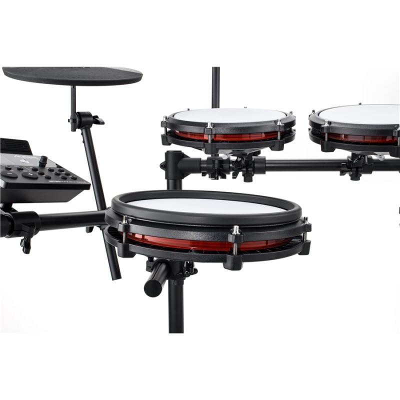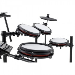 Alesis Nitro Max alza il livello della qualità sia per i batteristi principianti che per i musicisti più avanzati, offrendo un'autentica esperienza musicale con le pelli mesh di tipo premium, il tutto in un design ultra compatto. Dotato di 32 kit con suoni della rinomata libreria di campioni di batteria BFD, Nitro Max ti da la possibilità di connetterti tramite un ingresso audio wireless Bluetooth ad un qualsiasi device mobile, una serie di funzionalità di apprendimento integrate e 3 mesi di abbonamento Drumeo per lezioni illimitate con i migliori insegnanti del mondo. Nitro Max ti fornisce tutto ciò di cui hai bisogno per imparare a suonare la batteria velocemente e migliorare le tue abilità di batterista. Le pelli mesh bianche silenziose a maglia fitta sono molto reattive alla dinamica e generano un rumore contenuto, per permetterti di esercitarti quando e dove vuoi. Un'ampia gamma di suoni di batteria ultra realistici ti coinvolgeranno durante le tue performance qualunque sia il tuo stile musicale, e una serie di diversi strumenti di apprendimento ti aiuteranno nell'esercitazione riuscirai a migliorare il tuo timing e il tuo modo di suonare. Inoltre puoi riprodurre senza problemi i tuoi brani preferiti dal tuo device mobile o dalle piattaforme streaming tramite la connettività Bluetooth. Con le pelli a rete premium a trama fitta di Nitro Max, non c'è bisogno di preoccuparsi che le sessioni di pratica notturne disturbino i vicini o i membri della famiglia, non importa con quanta energia tu suoni. Il kit è dotato di un pad per rullante da 10" a doppia zona e di tre pad per tom da 8" tutti a singola zona e di un pad della grancassa di tipo verticale anch'esso con un'ampia superficie da 8". Per quanto riguarda i pad dei piatti troviamo un crash da 10" con funzione choke, un ride da 10" e un charleston da 10". Il drumkit Nitro Max è leggero, compatto ed elegante. I pad, i piatti e il modulo vengono montati su un rack a quattro gambe molto resistente che rimane fermo indipendentemente dall'intensità con cui suoni. Sono inclusi anche un resistente sake cable per la connessione dei pad al modulo, chiavetta per accordatura e montaggio e un paio di bacchette. Viene fornito anche un pedale della grancassa Alesis singolo di alta qualità e un pedale espressivo per il controllo del charleston. Grazie al design salva spazio puoi persino piegare il kit Nitro Max e renderlo ancora più piccolo per riporlo facilmente ovunque tu voglia: perfetto per camere da letto, soggiorni o qualsiasi altra area in cui lo spazio è limitato. Il modulo Nitro Max in dotazione include oltre 440 suoni di batteria registrati professionalmente dal leader del settore BFD: ogni suono è stato accuratamente registrato, mixato e prodotto per fornire ricchi dettagli timbrici e un'ottima articolazione espressiva. I suoni sono disposti internamente in 32 kit classici e moderni pronti all'uso, facilmente modificabili utilizzando le impostazioni tramite la visuale dello schermo retroilluminato, così da poter creare e memorizzare ulteriori 16 kit user personalizzati. Collega Nitro Max a un PC o Mac tramite USB e potrai sbloccare un pacchetto audio premium extra tramite BFD Player ed esplorare un mondo di suoni in continua espansione. Drumeo è la più grande piattaforma online di formazione sulla batteria al mondo, che fornisce lezioni passo passo da oltre 200 dei migliori batteristi del mondo e oltre 5000 canzoni su cui studiare. E' possibile rallentare o accelerare la velocità dei brani ed è inclusa anche la funzione per rimuovere completamente le parti di batteria originali per lasciare spazio alla tua personale esecuzione. Inoltre c'è un supporto personale illimitato e una comunità online di oltre 3 milioni di batteristi per aiutarti a raggiungere i tuoi obiettivi. Nitro Max include un pass di accesso di 3 mesi a Drumeo, del valore di 90 euro. Alesis collabora da tempo con Melodics e ti da accesso a 60 lezioni gratuite per sempre, oltre a 1 mese di abbonamento premium. Melodics offre un approccio di apprendimento attivo, basato sulle canzoni, che inizia suonando e imparando da groove leggendari. Ottieni un feedback immediato sul tuo andamento e scopri i tuoi progressi in ogni sessione, con un approccio all'apprendimento simile a un gioco ma che ti motiva costantemente a continuare a migliorare. |